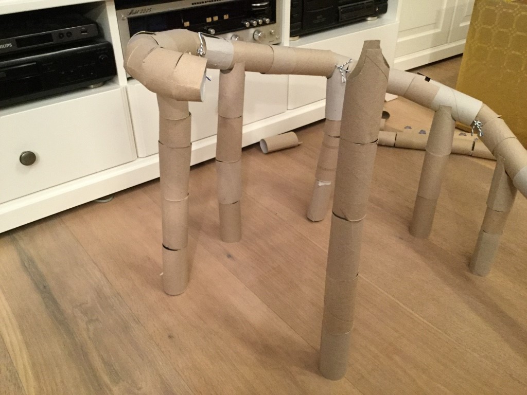 Für das Grundgerüst schneidest du einige Klorollen in der Mitte durch. Der Unterschied von einem Stützpfeiler zum nächsten beträgt eine halbe Klorolle. Wenn du Küchenrollen hast, kannst du sie auf die Länge von zwei Klorollen kürzen.