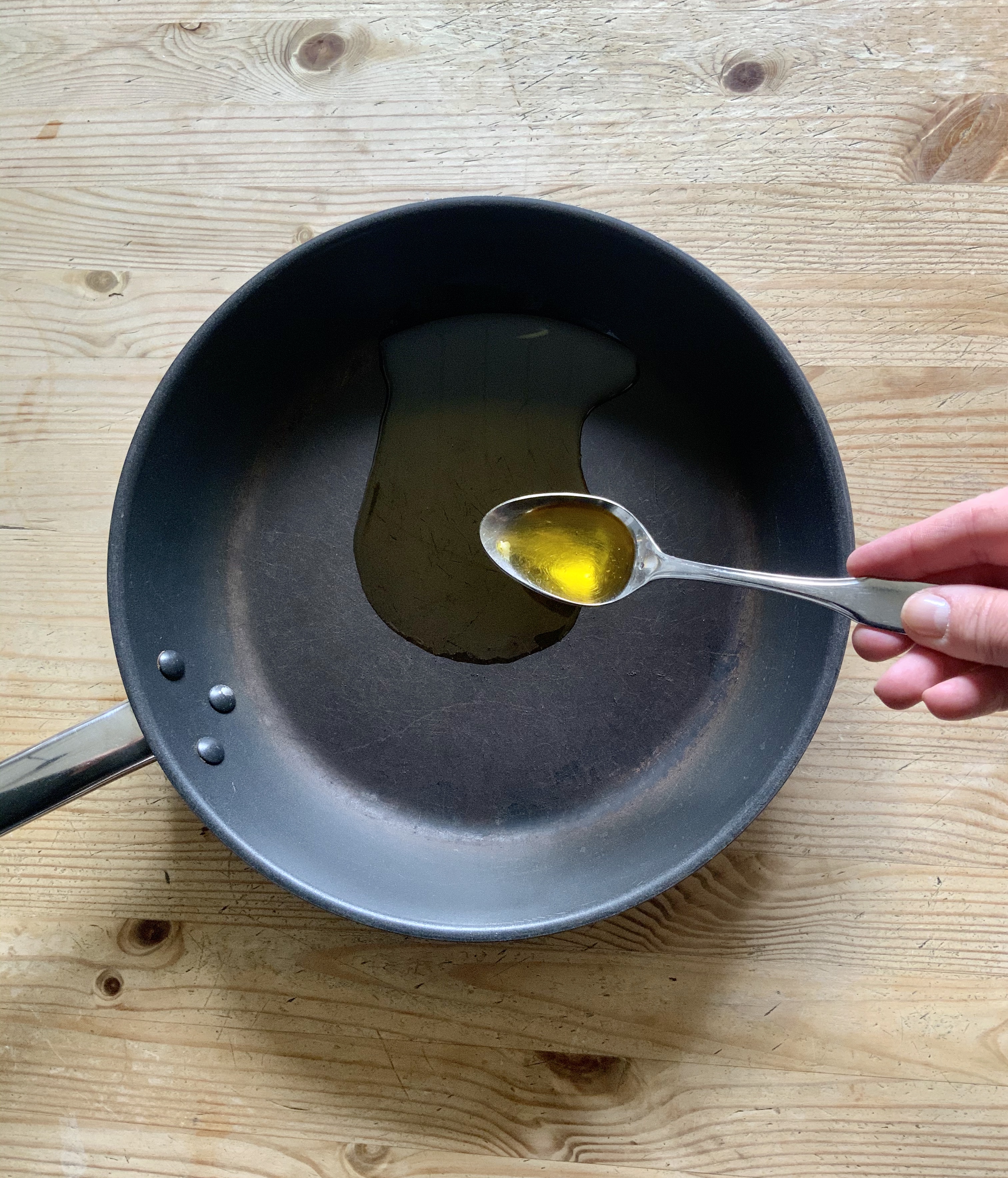 Nun lässt du 2 EL Öl in der Pfanne heiß werden.