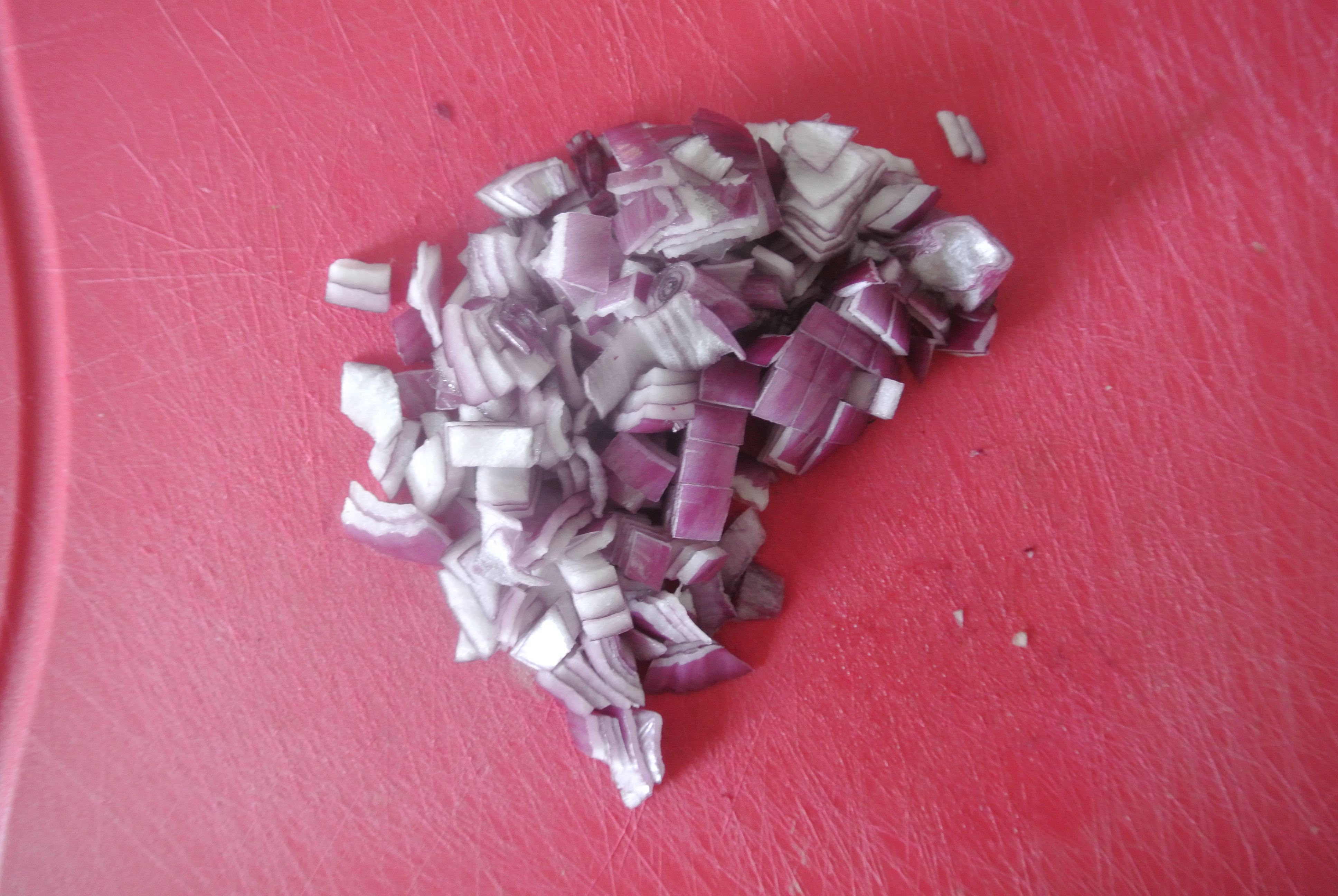 Schritt 1: Schneide die Zwiebel in kleine Würfel.