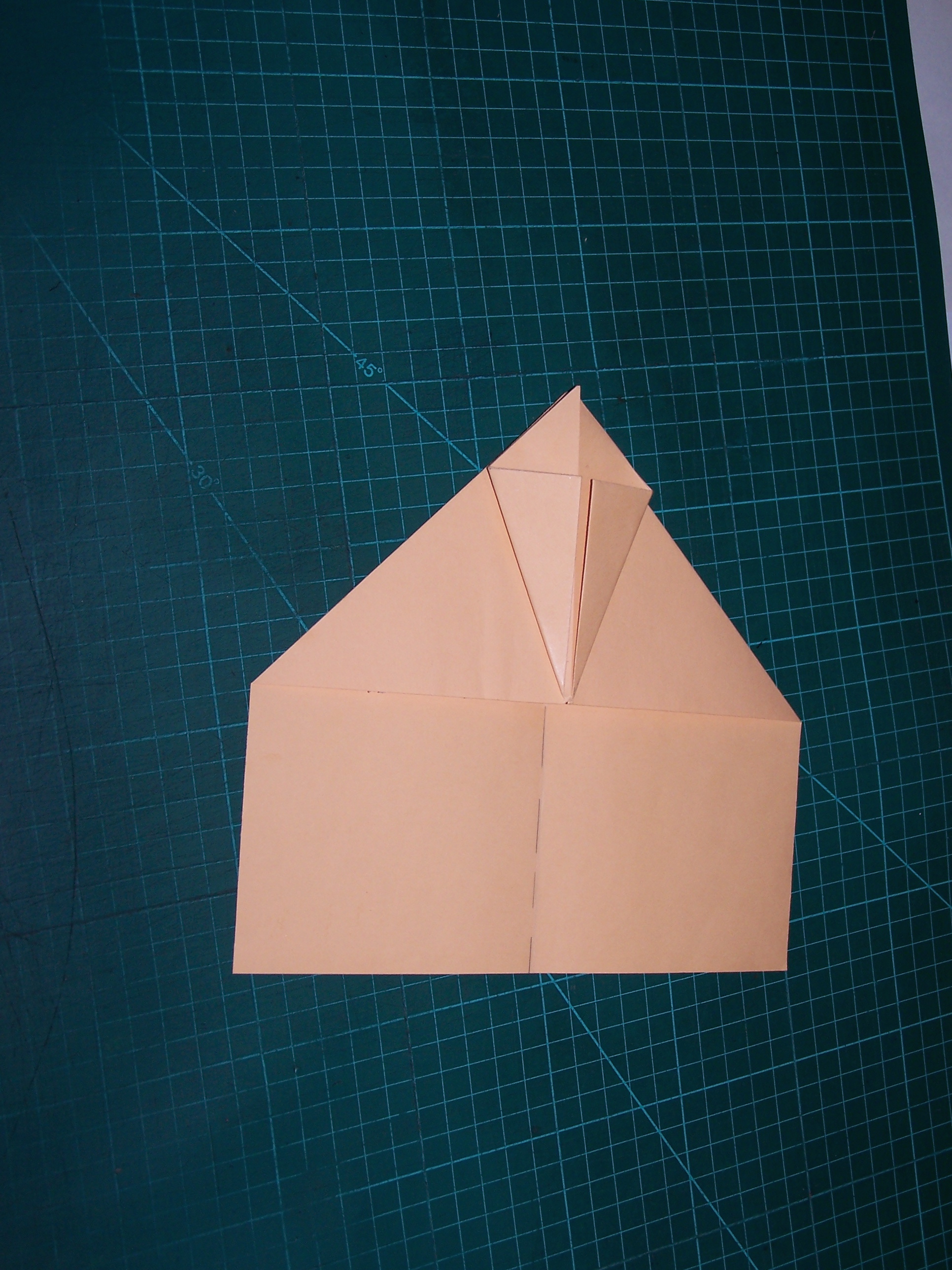 Schritt 11: … sodass ein „Drachen“ zu sehen ist. Du drehst den Flieger nun mit der Spitze nach links…